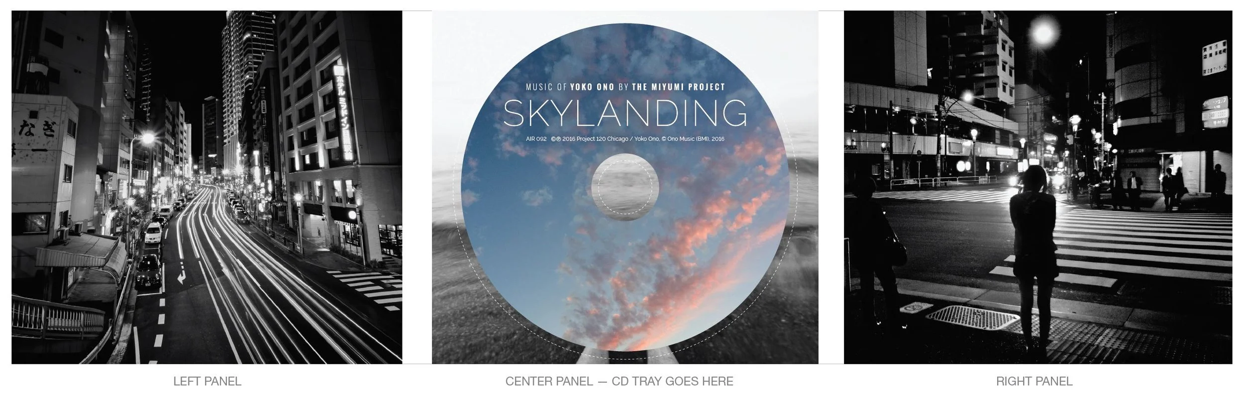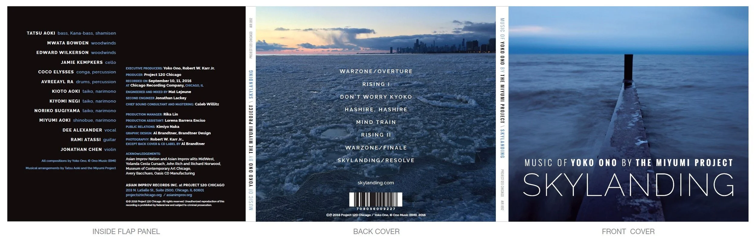 SKYLANDING (MUSIC OF YOKO ONO) is the studio album performed by Tatsu Aoki and the Miyumi Project featuring Dee Alexander. It was released in limited volume in CD format on October 17, 2016 simultaneously with the dedication of SKYLANDING by Yoko Ono in Jackson Park, Chicago.